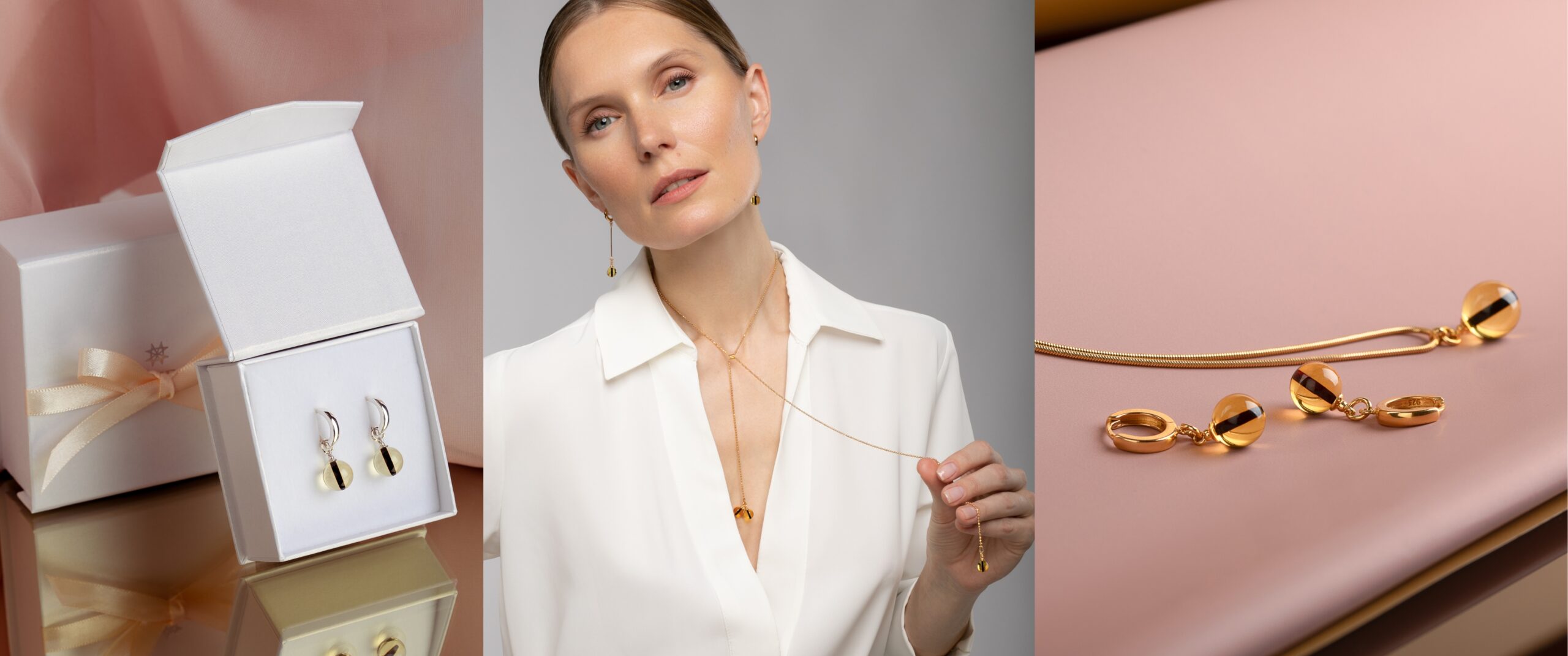 Elegantiškas ir dalykiškas minimalistinio stilius papuošalų rinkinys AUREA CHERRY.