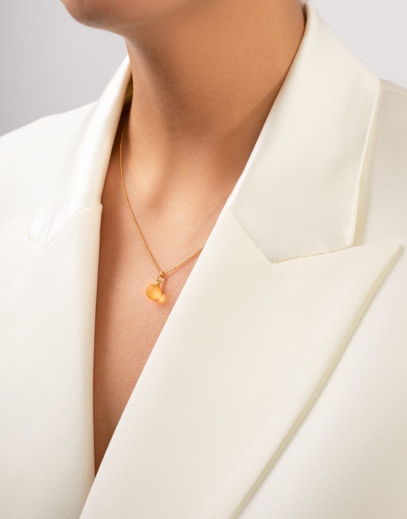 Minimalist gold-plated necklace with 8 mm yellow amber ball pendant – GOLDEN LEMON