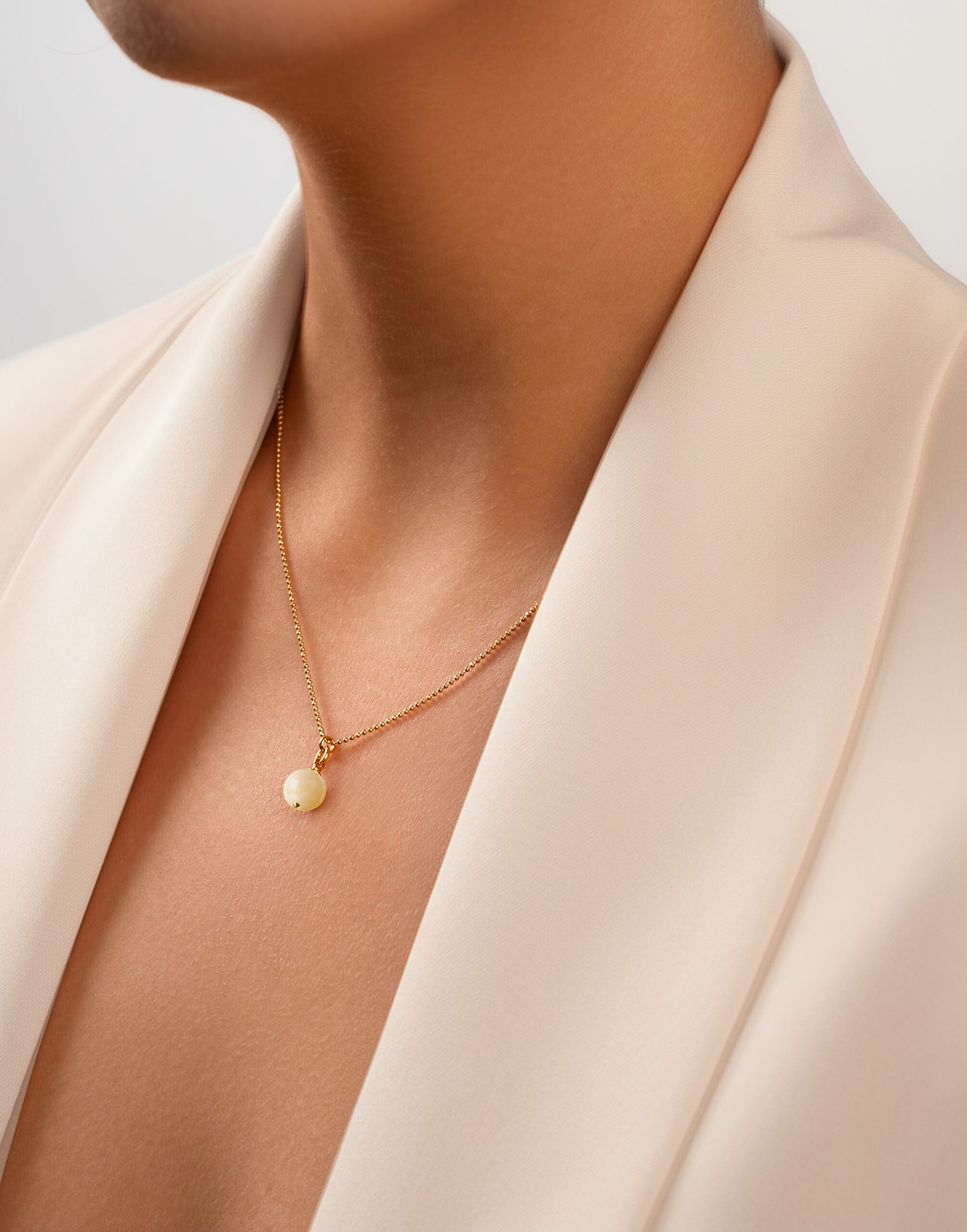 Minimalist gold-plated necklace with 7 mm white amber pendant – ROYAL WHITE