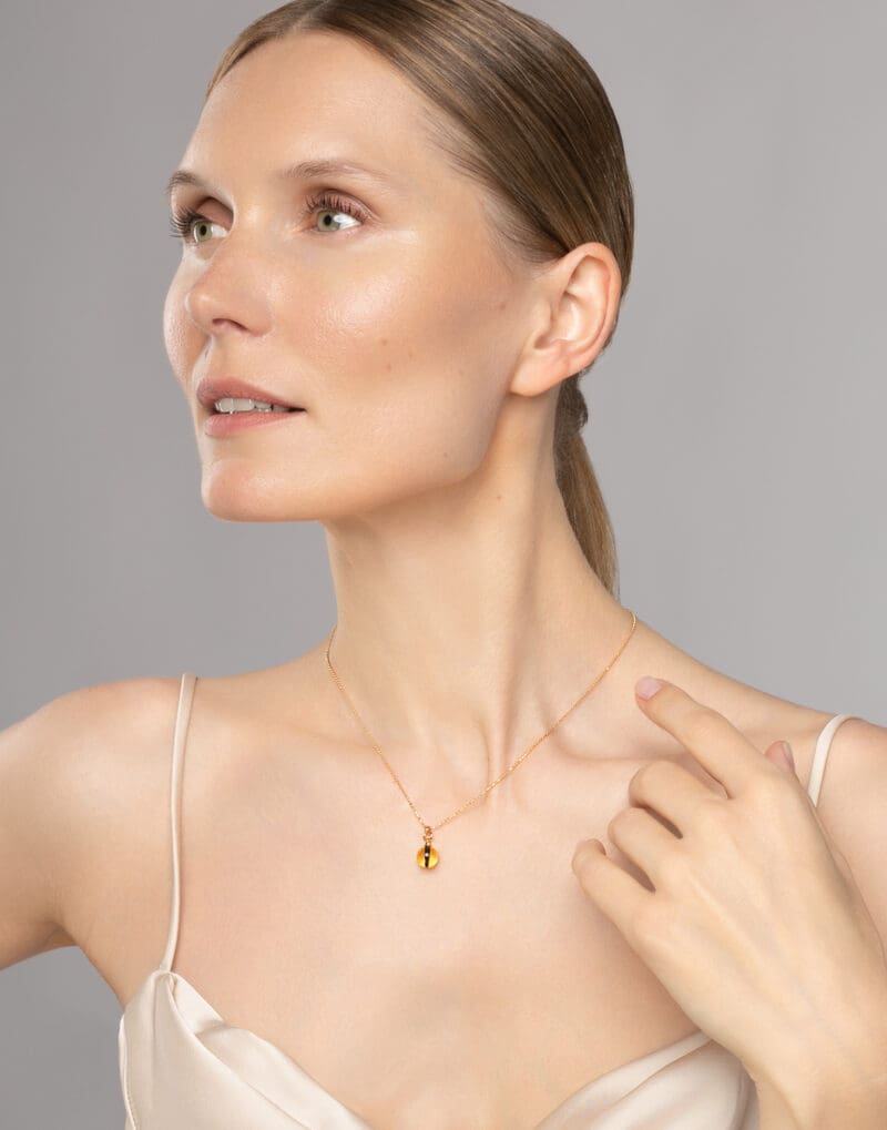 Elegantiški BLISS AMBER kolekcijos papuošalai pagaminti iš skaidraus, medaus atspalvio, facetuoto gintaro. Blizgiai išpoliruotos gintaro briaunos sukuria žėrėjimą ir daugiaspalvį spindesį. Iš vienos pusės gintaras gali atrodyti tamsiai vyšninis, tarsi juodas, iš kitos žalsvas arba skaidraus medaus atspalvio.