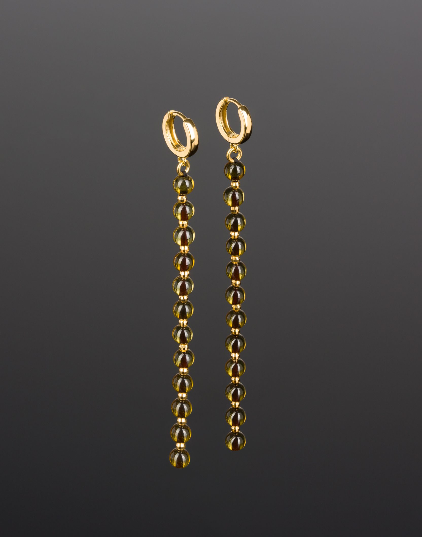 Ilgi paauksuoti auskarai su skaidraus gintaro karoliukais TIGER