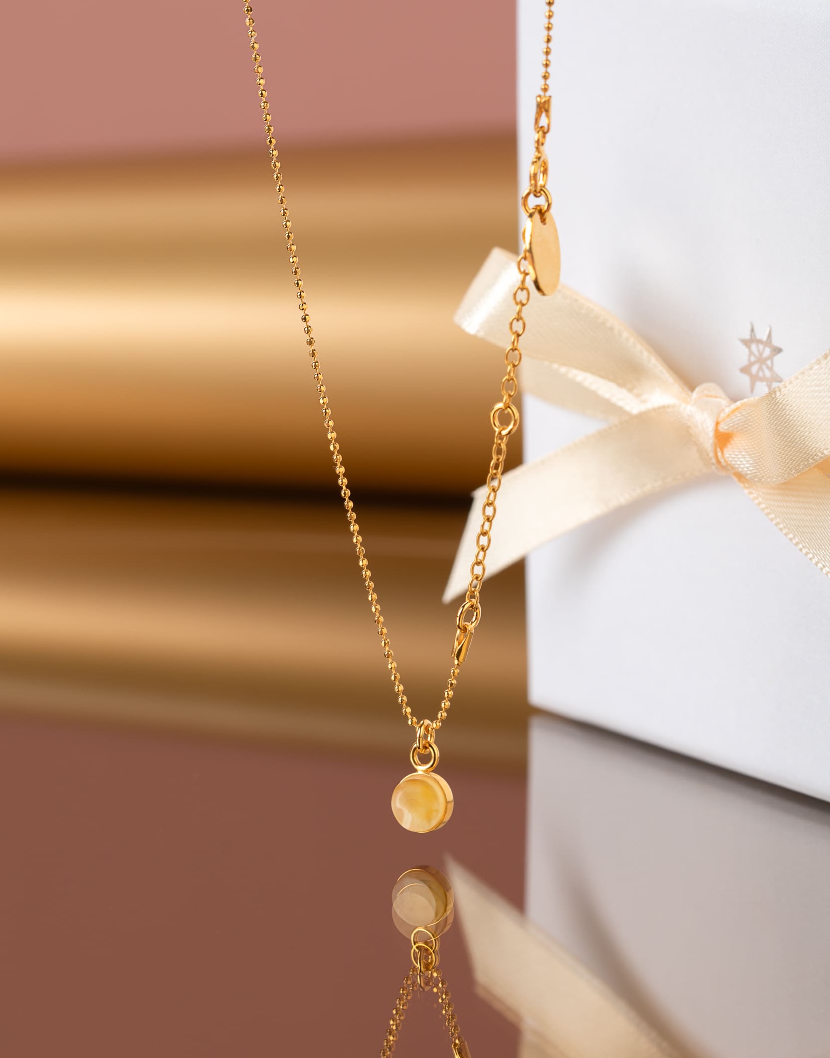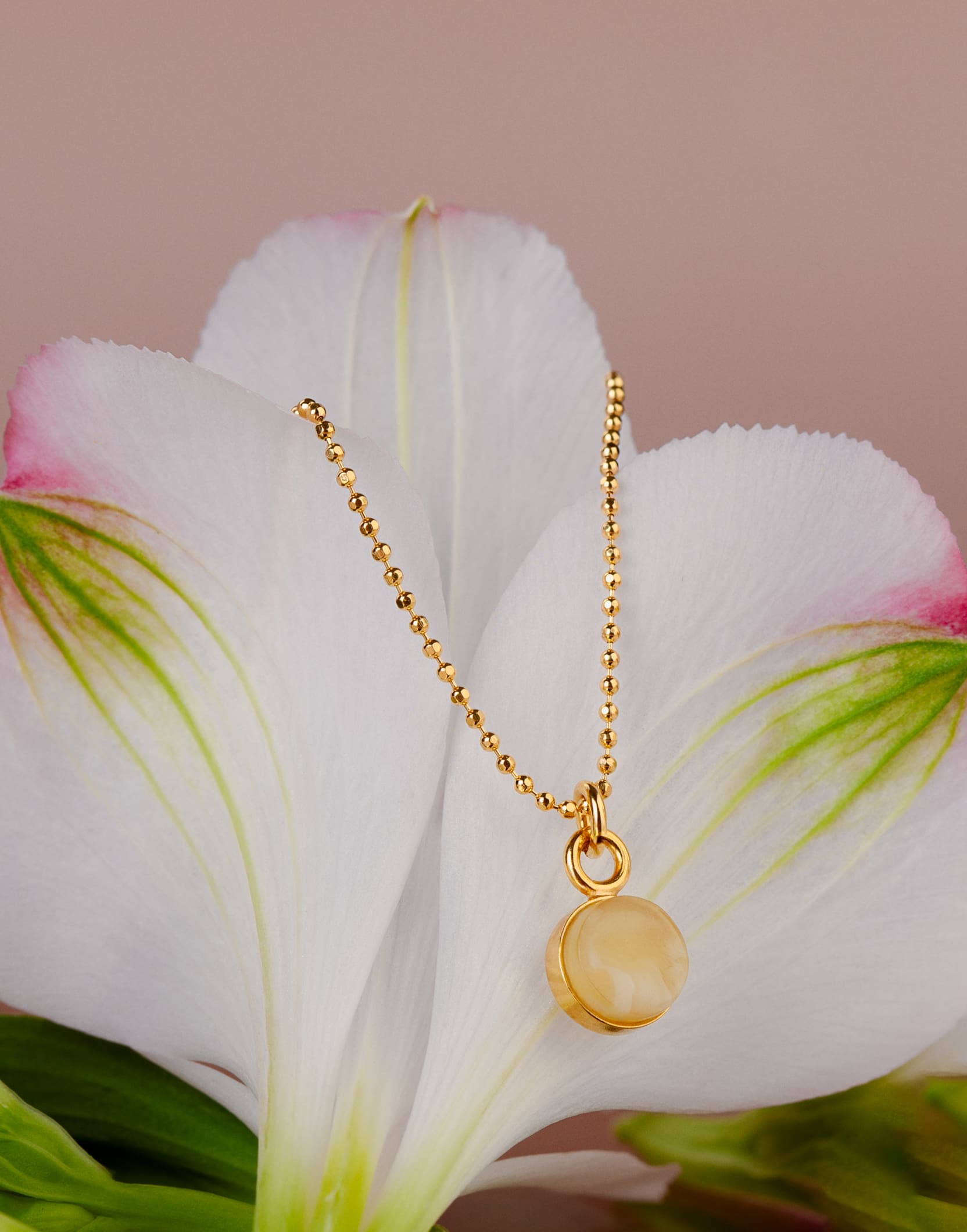 Paauksuota grandinėlė su 6 mm išskirtinio gintaro pakabuku – MARCIPANO
