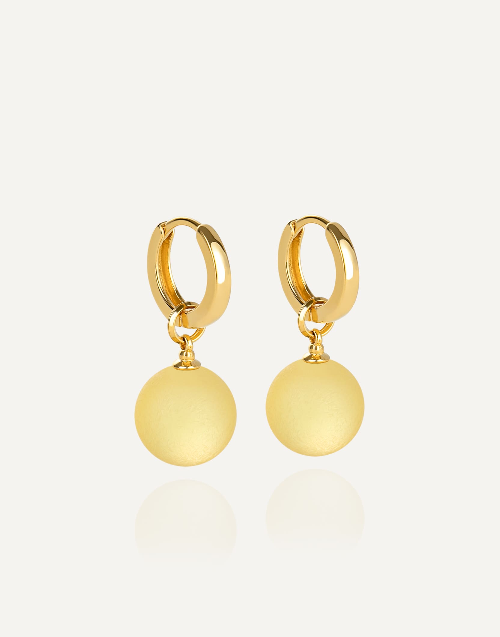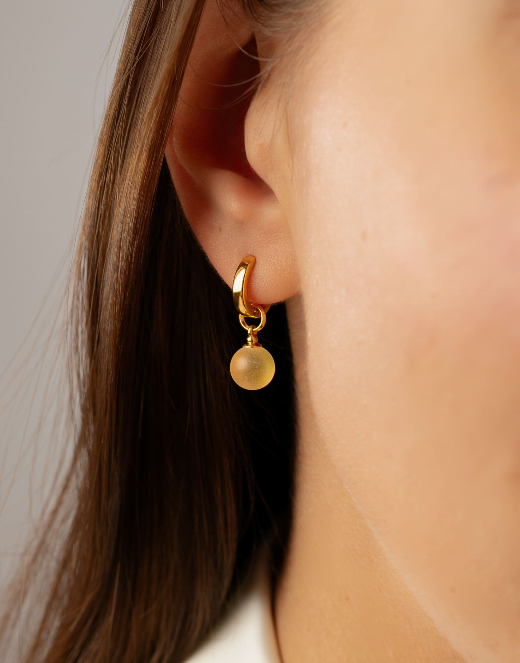 Paauksuoti auskarai HOOP su geltono gintaro pakabukais – GOLDEN LEMON puikiai tiks prie įvairių drabužių derinių. Geltono gintaro pakabukai nuo paauksuotų auskarų nusisega, todėl HOOP auskarus galėsite nešioti ir atskirai, o pasirinkto dydžio pakabukus segti prie grandinėlių, vėrinių ar apyrankių. Pasirinkite norimą gintarinių pakabukų ir apvalių paauksuotų auskarų dydį ir mėgaukitės moderniu papuošalu.