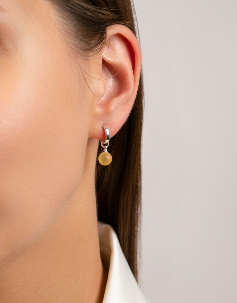 Paauksuoti komplektuojami auskarai HOOP su geltono gintaro pakabukais – GOLDEN LEMON