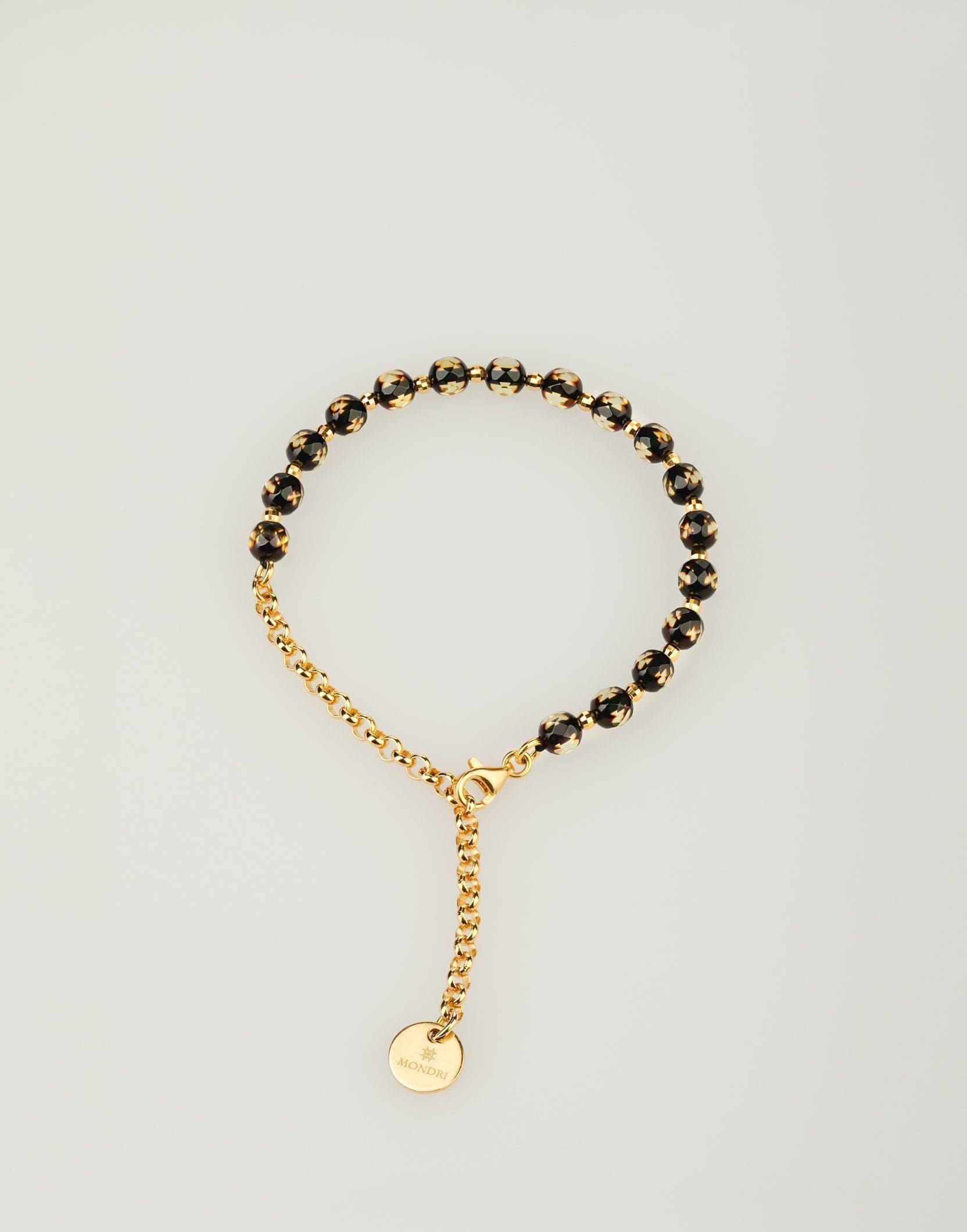 Reguliuojamo dydžio paauksuota apyrankė iš karoliukų su 5 mm facetuotu gintaru – CHAIN BLISS