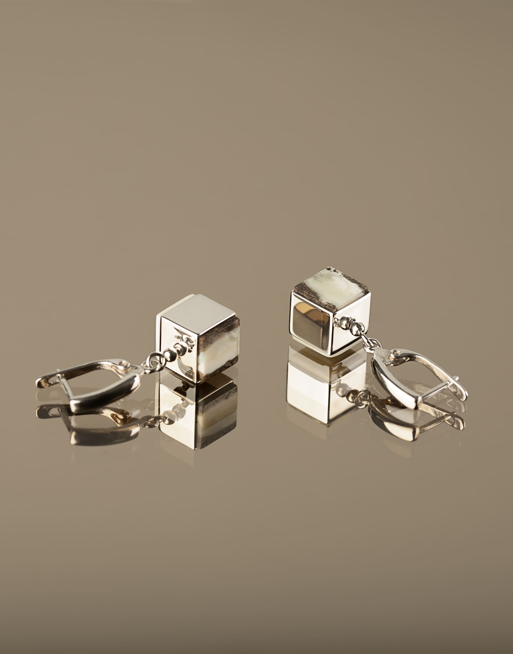 Sidabriniai kabantys auskarai su išskirtiniu gintaru – CUBICO