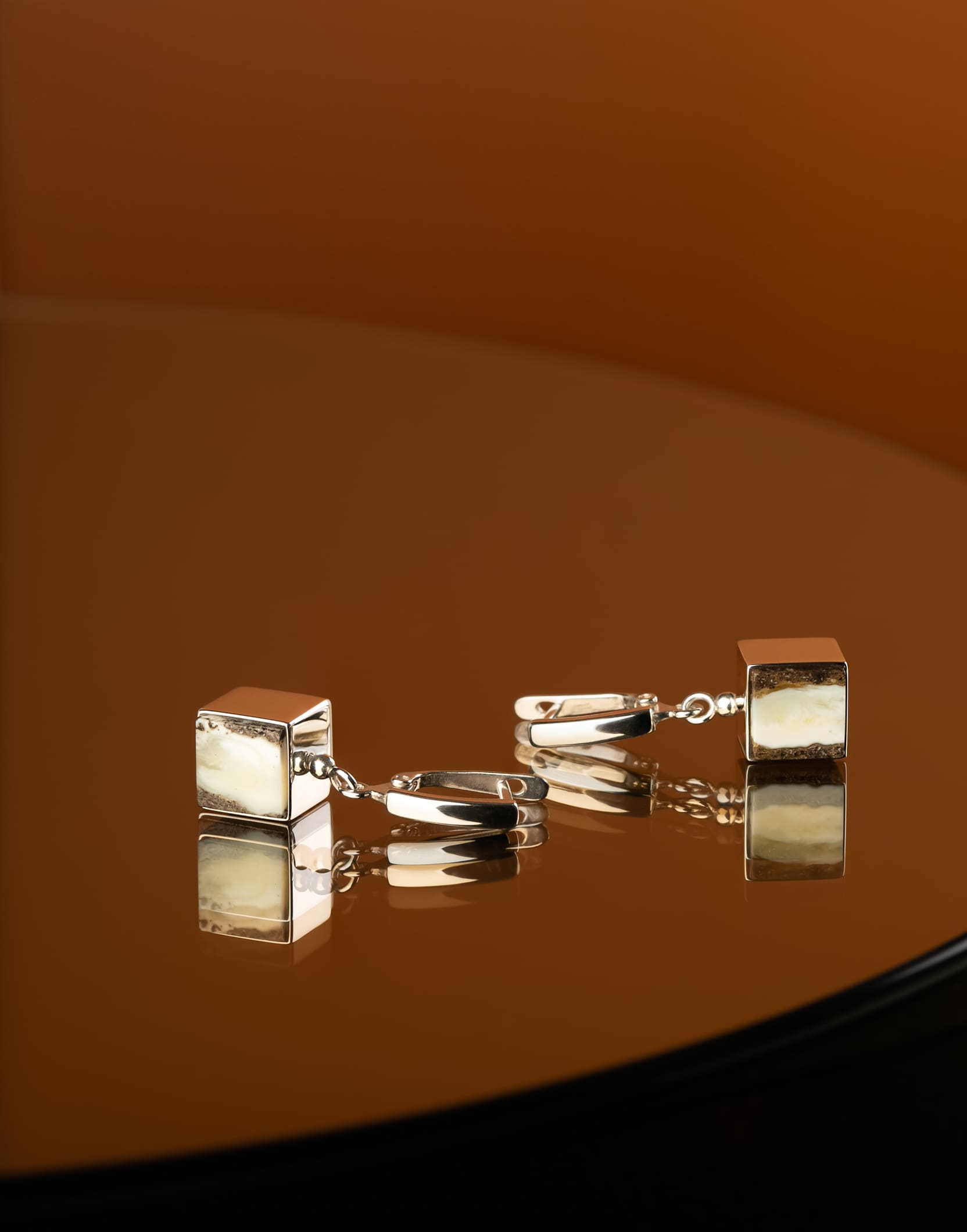 CUBICO auskarai – tai minimalistinė forma, kurioje telpa daugiau nei tik dizainas. Tikslios formos natūralus Baltijos gintaras čia įgauna naują veidą: šviesūs, subtiliai margo gintaro atspalviai susilieja su sidabro paviršiaus švara ir ramia prabanga. Visi unikalūs ir išskirtiniai – lyg švelniai nutapyti ranka, niekada nepasikartojantys, tačiau kruopščiai suderinti jie tampa estetikos pavyzdžiu.