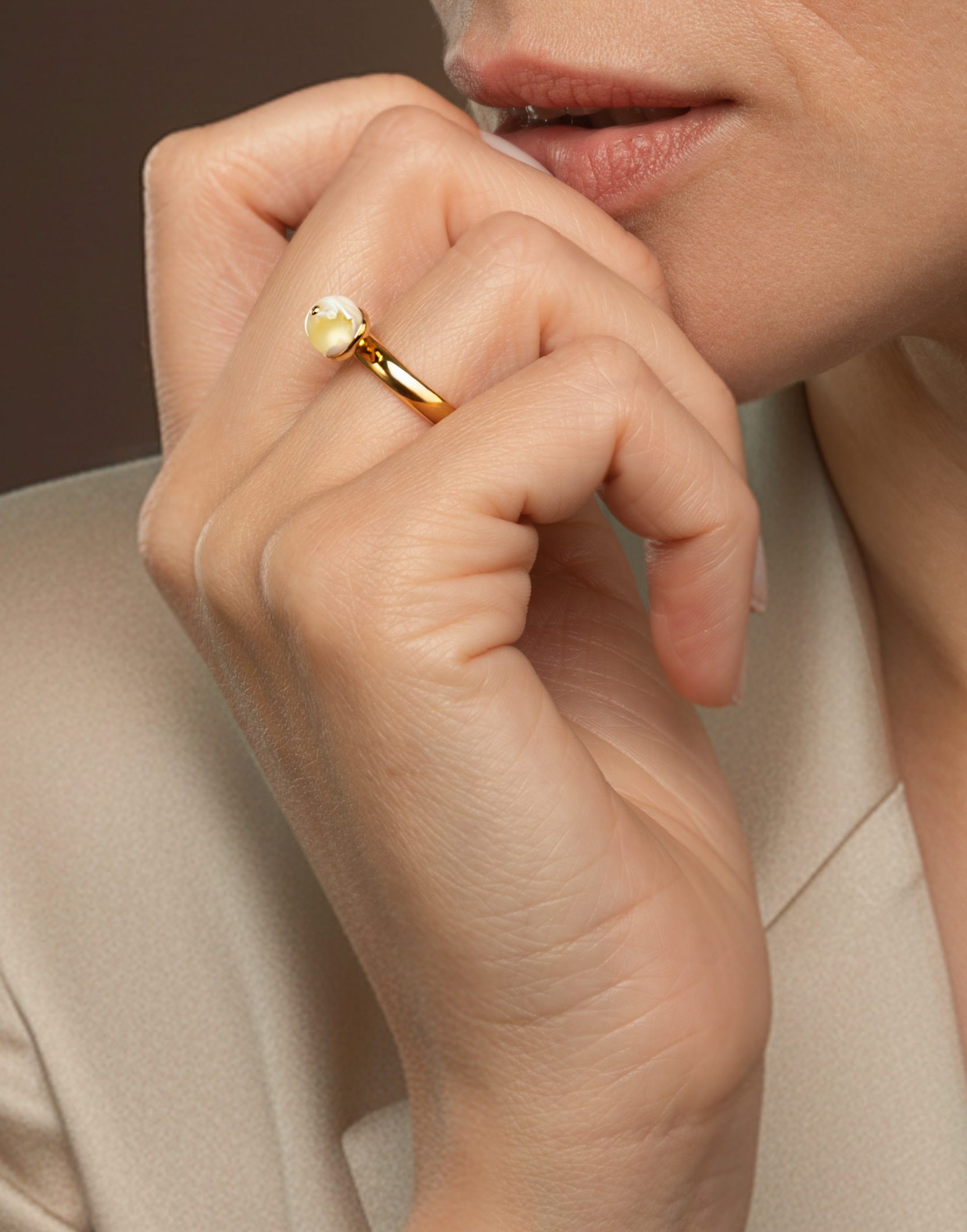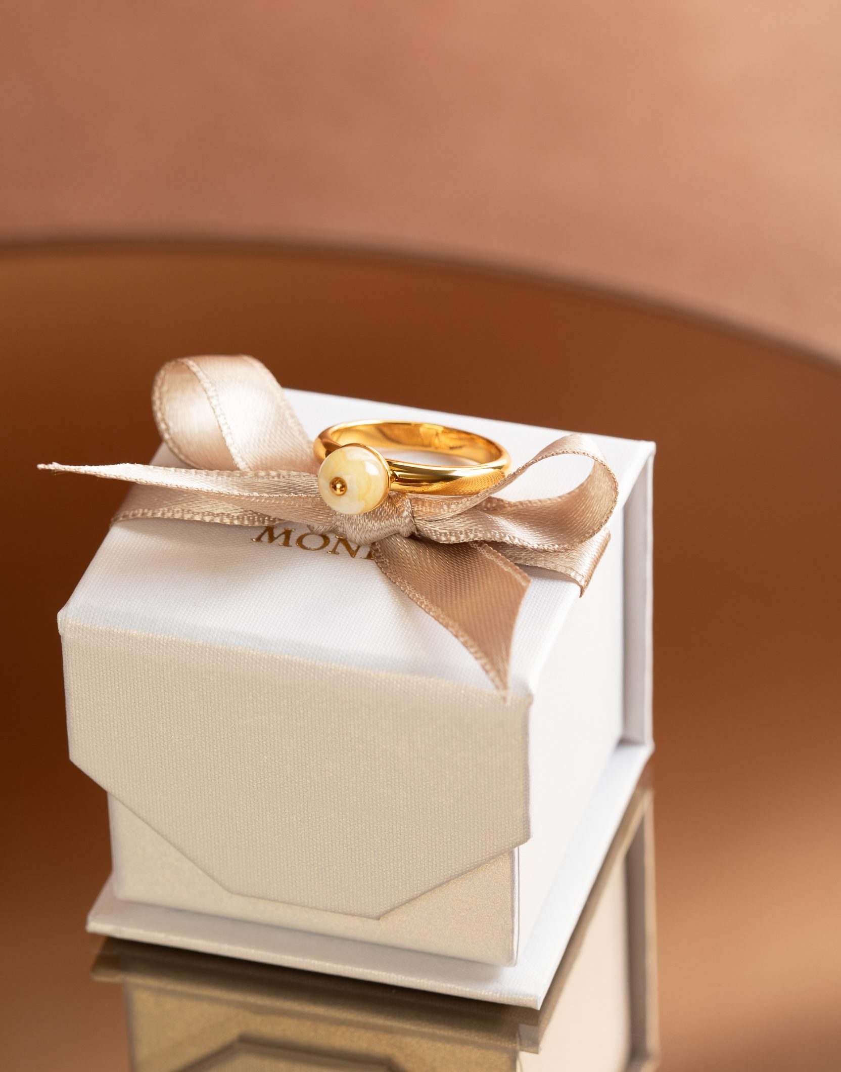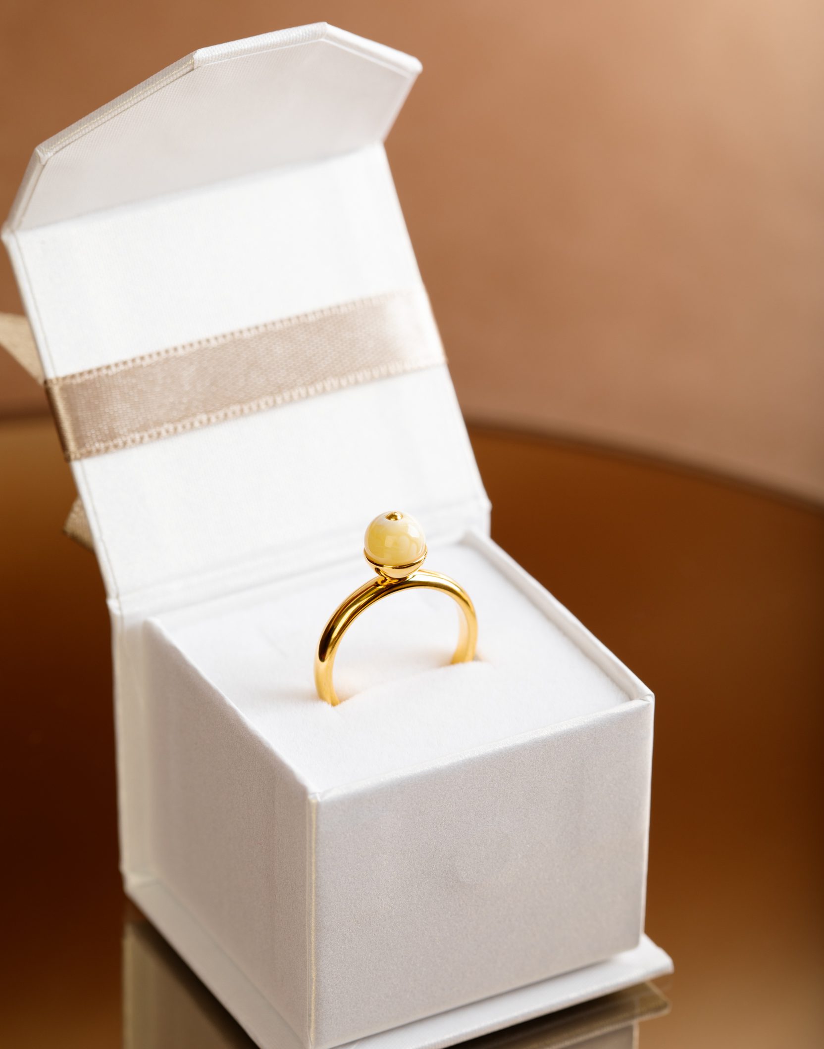 Paauksuotas žiedas su 7 mm baltu gintaru – ROYAL WHITE
