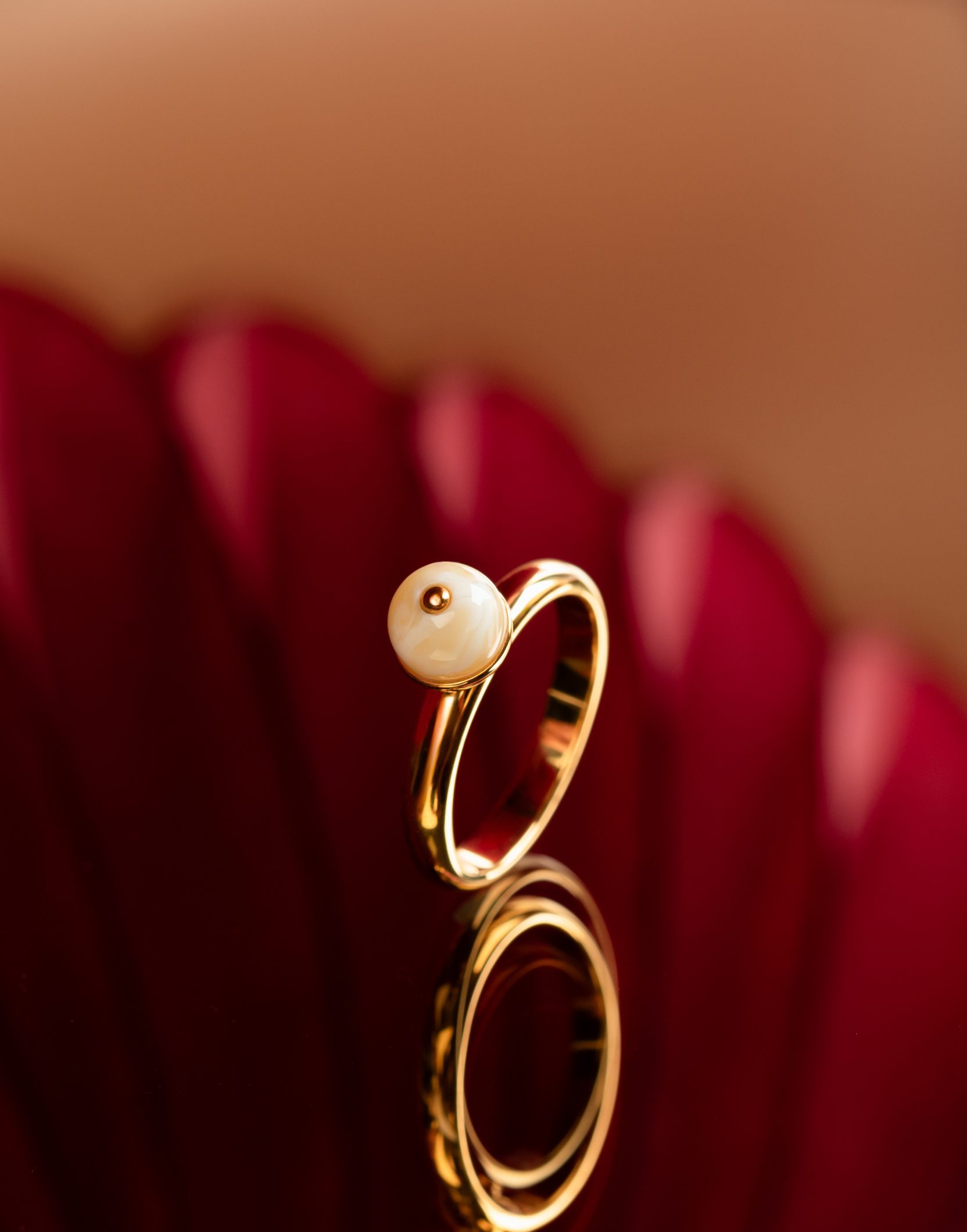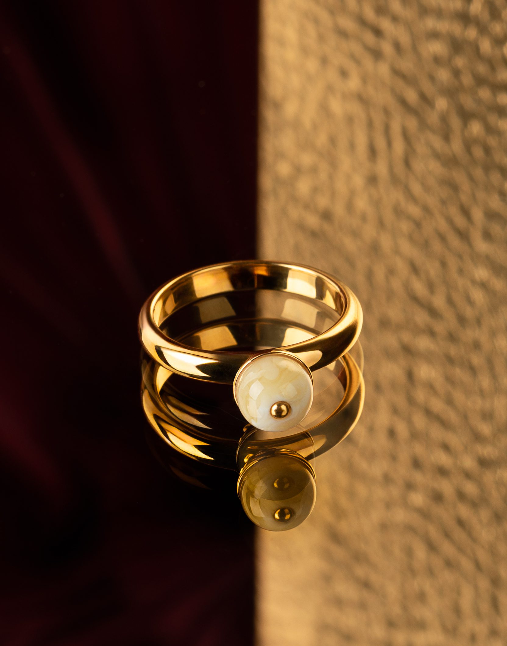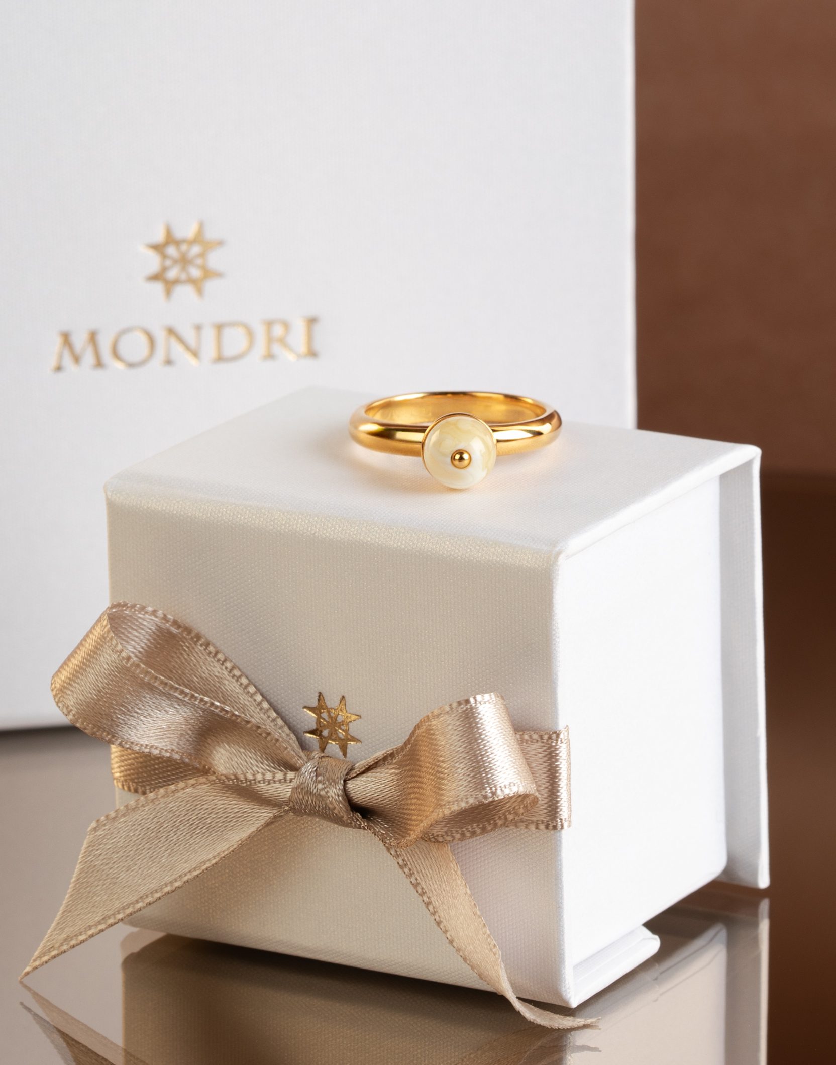 24K auksu paauksuotas žiedas su baltu gintaru ROYAL WHITE – subtilus ir elegantiškas akcentas, kuriame dera natūralus šviesus Baltijos gintaras ir gryno aukso spalva. Kruopščiai apdirbtas baltas, peizažinis ar liepų medaus gintaras švelniai švyti ir suteikia žiedui lengvos, rafinuotos prabangos pojūtį. Minimalistinis dizainas leidžia jį dėvėti kasdien ar ypatingomis progomis, o prasminga simbolika paverčia puikiu pasirinkimu ir sužadėtuvėms.