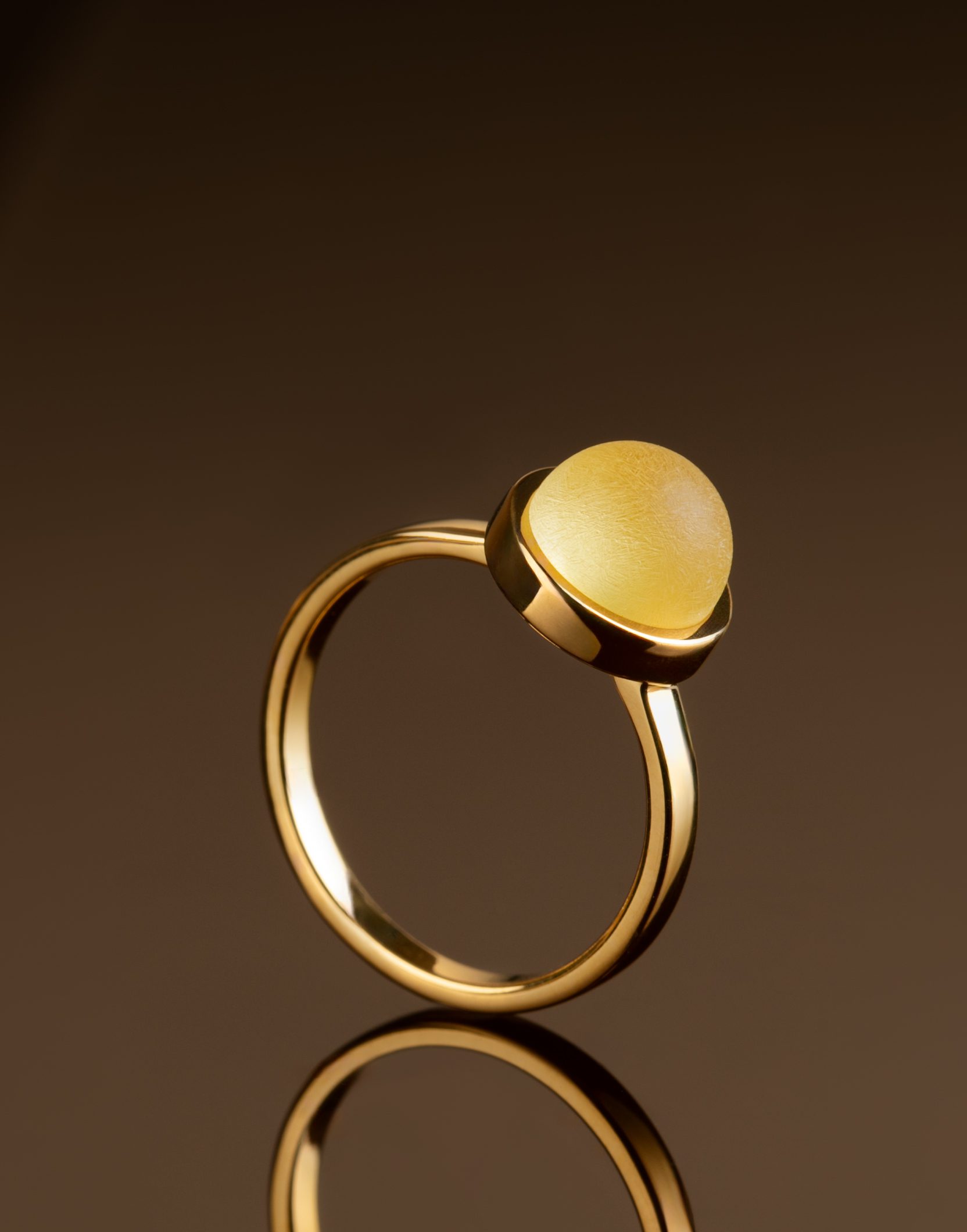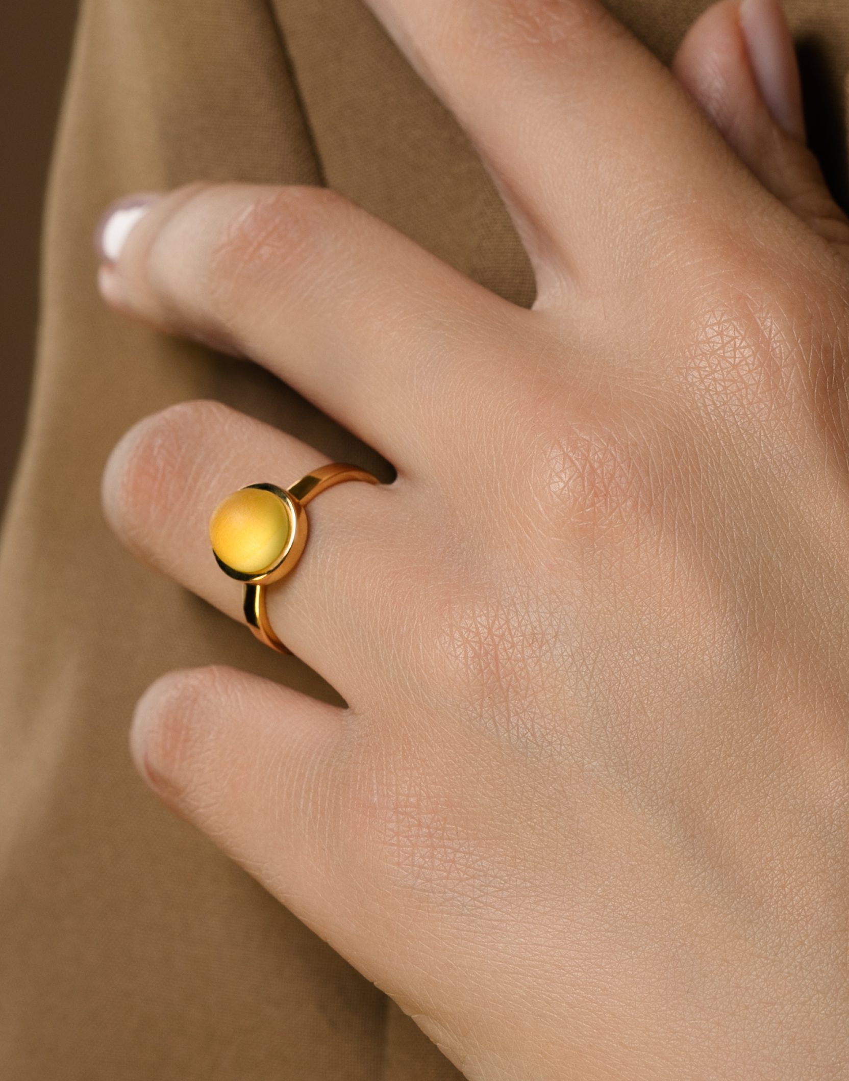 Paauksuotas žiedas su geltonu gintaru – AUREA LEMON