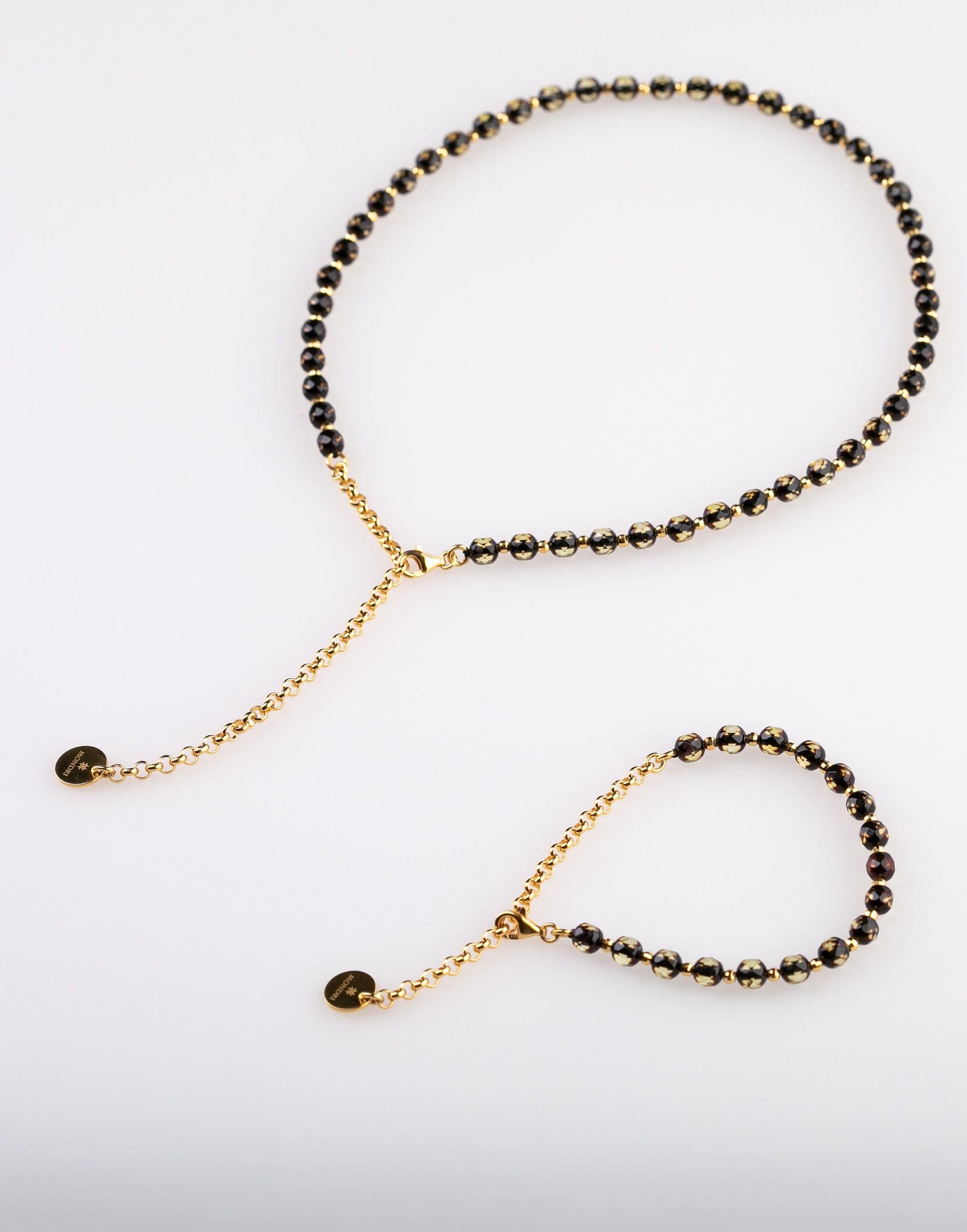 Reguliuojamo ilgio vėrinio ir apyrankės papuošalų rinkinys su facetuotu gintaru ir paauksuotu sidabru – CHAIN BLISS