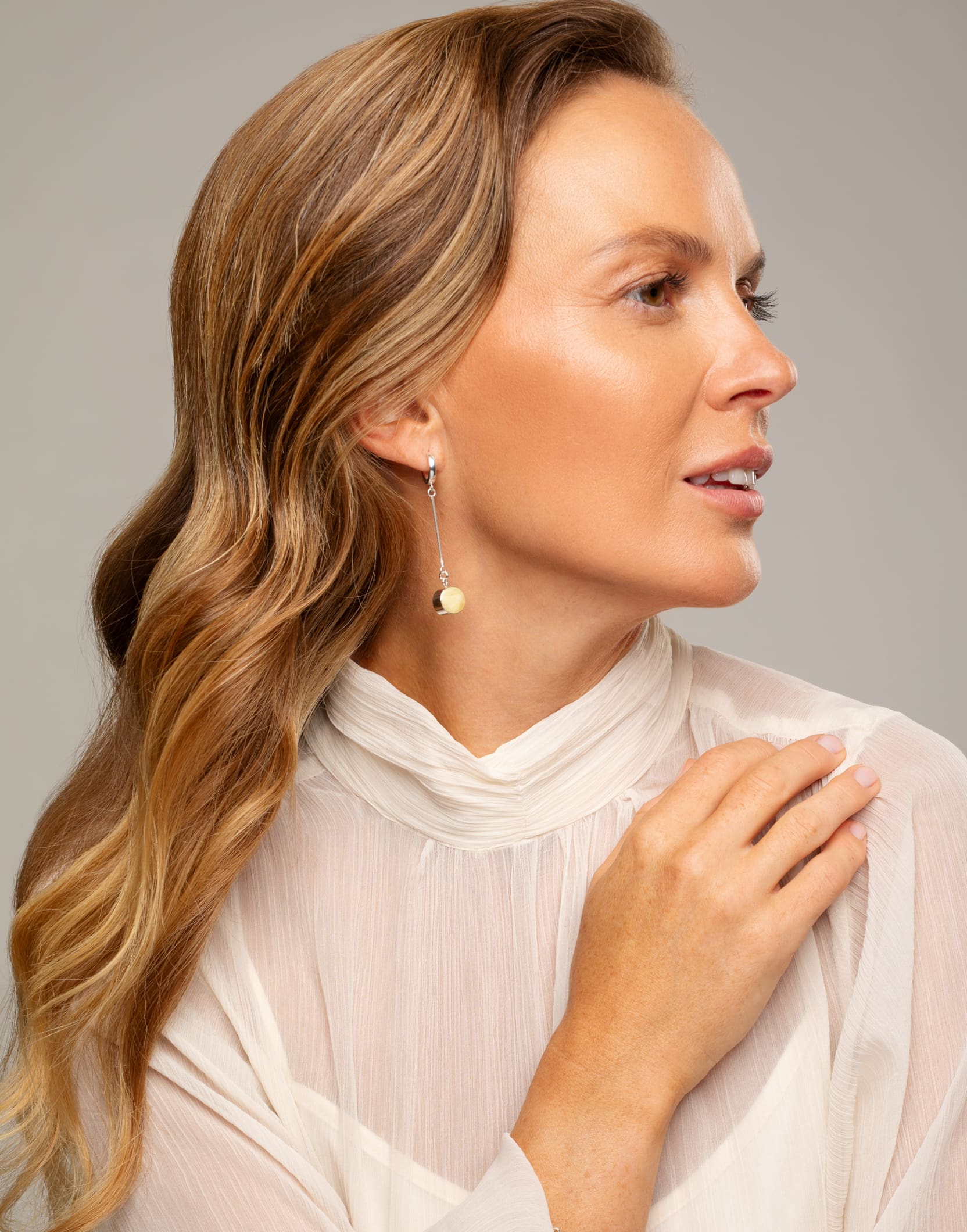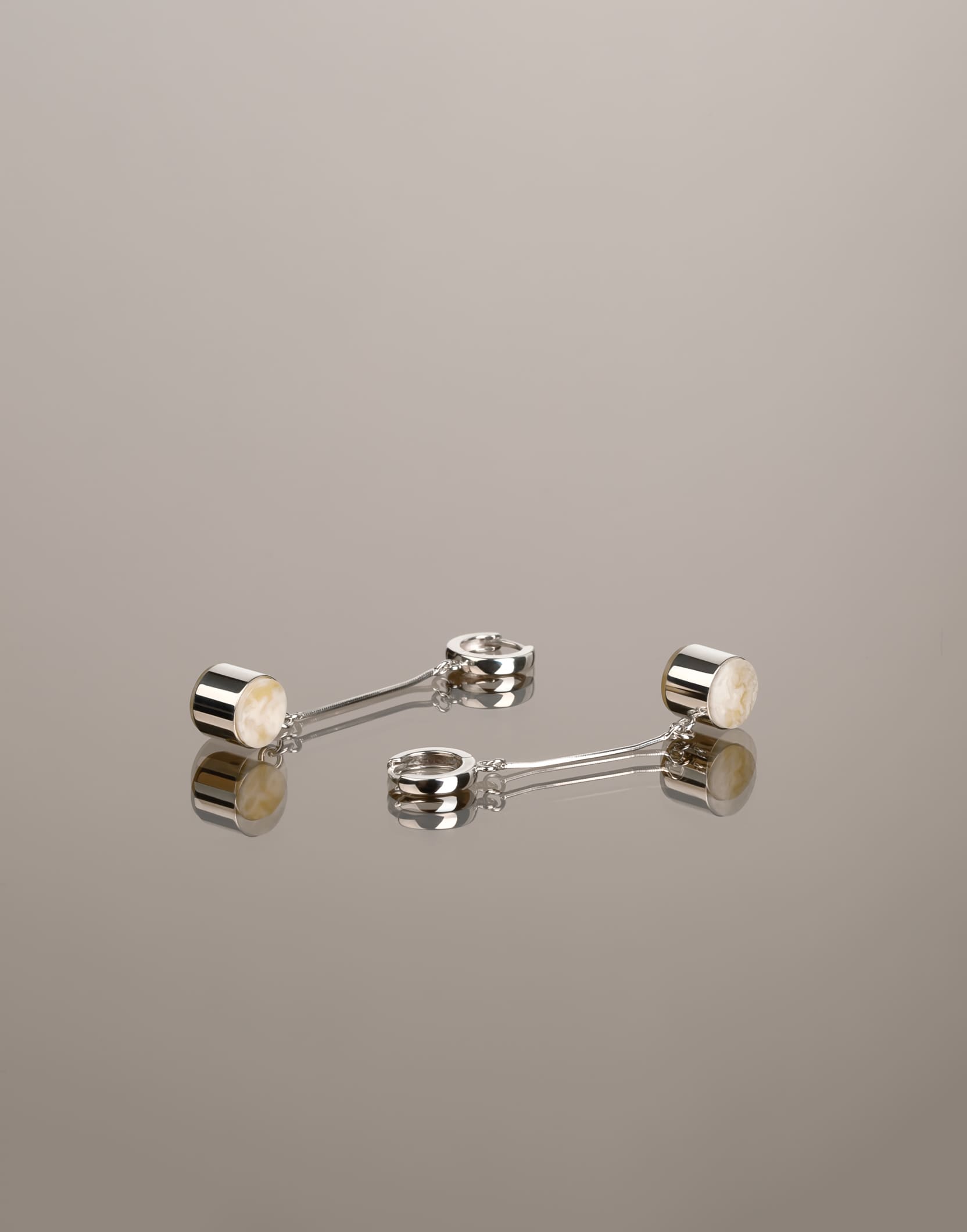 MARCIPANO – tai išraiškingi, ilgi auskarai, kuriuose dera aiškios linijos ir natūralaus gintaro unikalumas. Elegantiška cilindro forma pabrėžia auskarų architektūrinį charakterį, o kiekviena rankų darbo detalė liudija kruopštų meistriškumą.