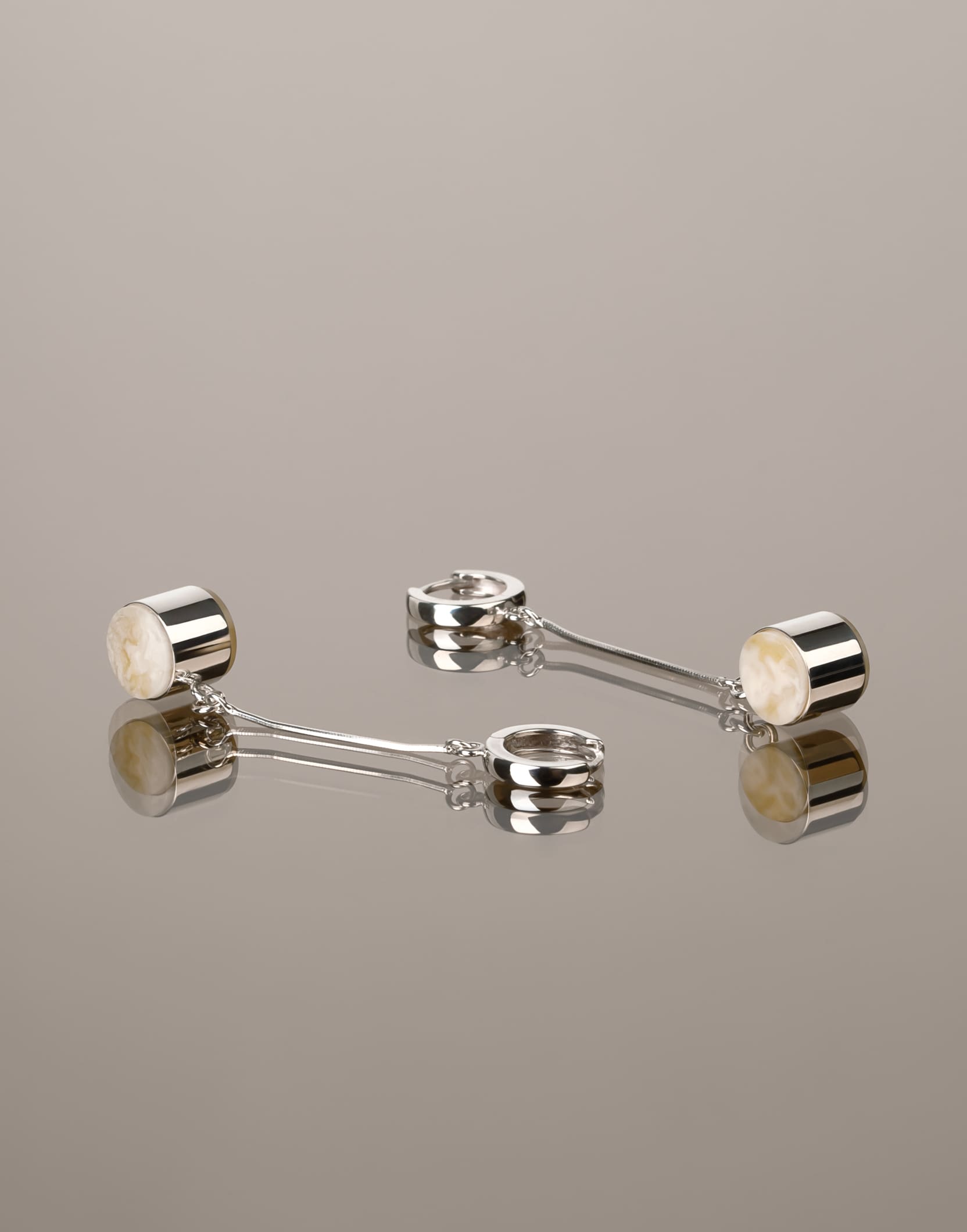 Sidabriniai ilgi kabantys auskarai su išskirtiniu gintaru – MARCIPANO