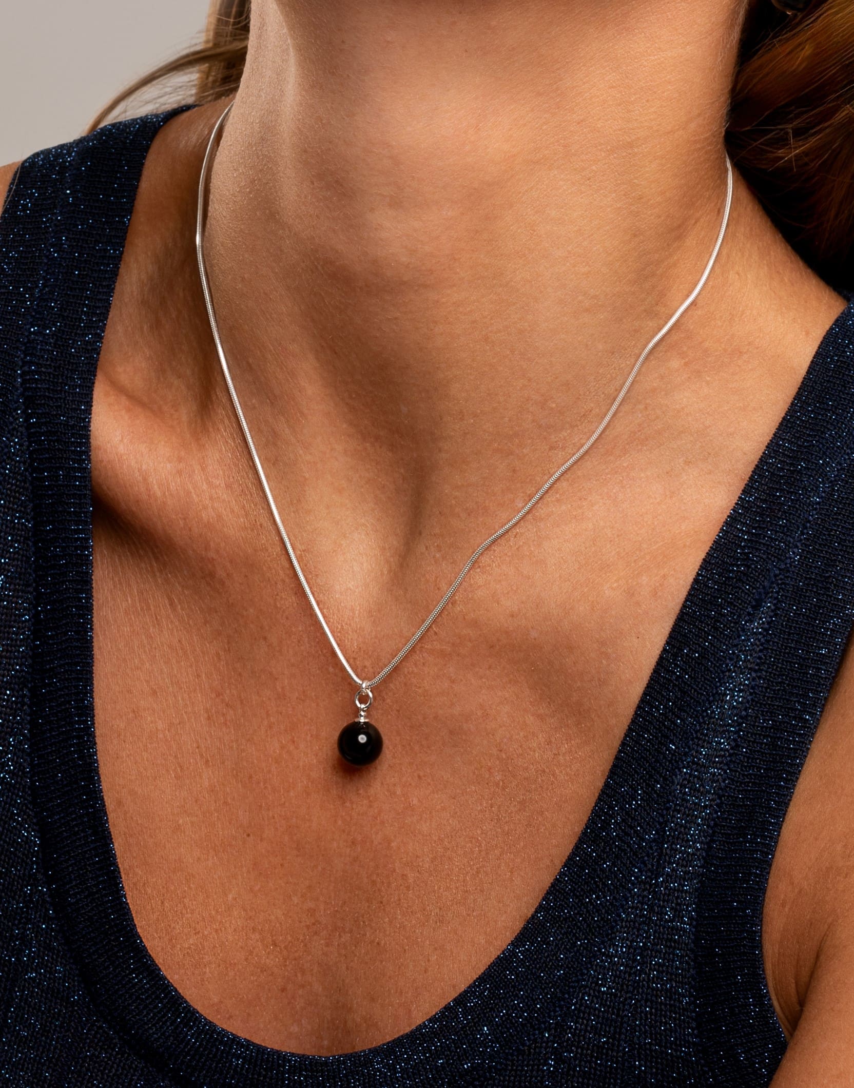Kabantys auskarai su apvaliu, itin patogiu užsegimu suteikia lengvumo pojūtį ir puikiai dera tiek prie klasikinės, tiek prie modernios aprangos. Sidabrinis koljė su reguliuojamo ilgio grandinėle (40–45 cm) leidžia pritaikyti papuošalą pagal savo stilių ir nuotaiką. Rinkinį užbaigia minimalistinio dizaino apyrankė, subtiliai išryškinanti riešą ir suteikianti visumai vientisumo.