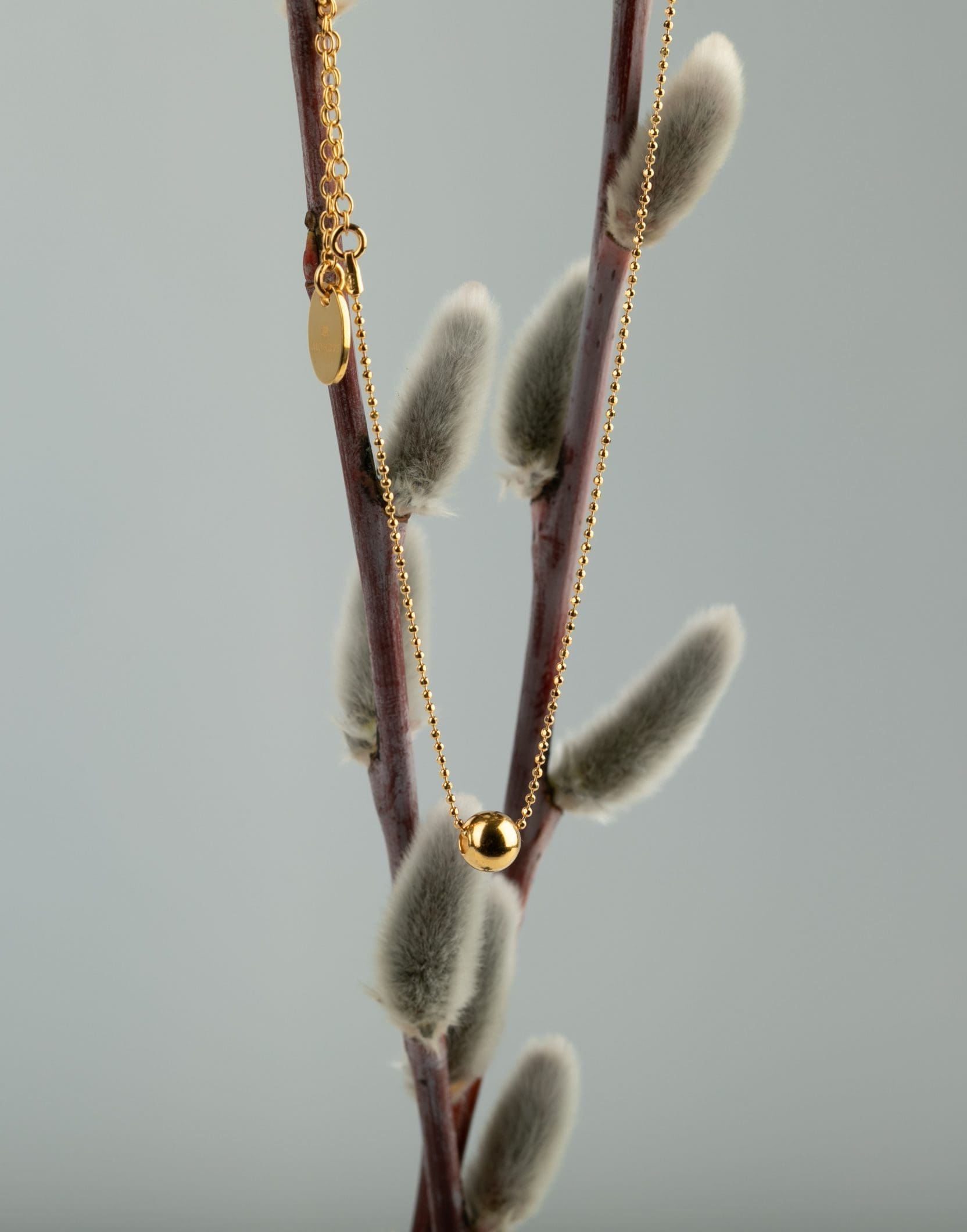 Paauksuotas minimalistinis kaklo papuošalas su paauksuotu burbuliuku – GOLDEN BALL