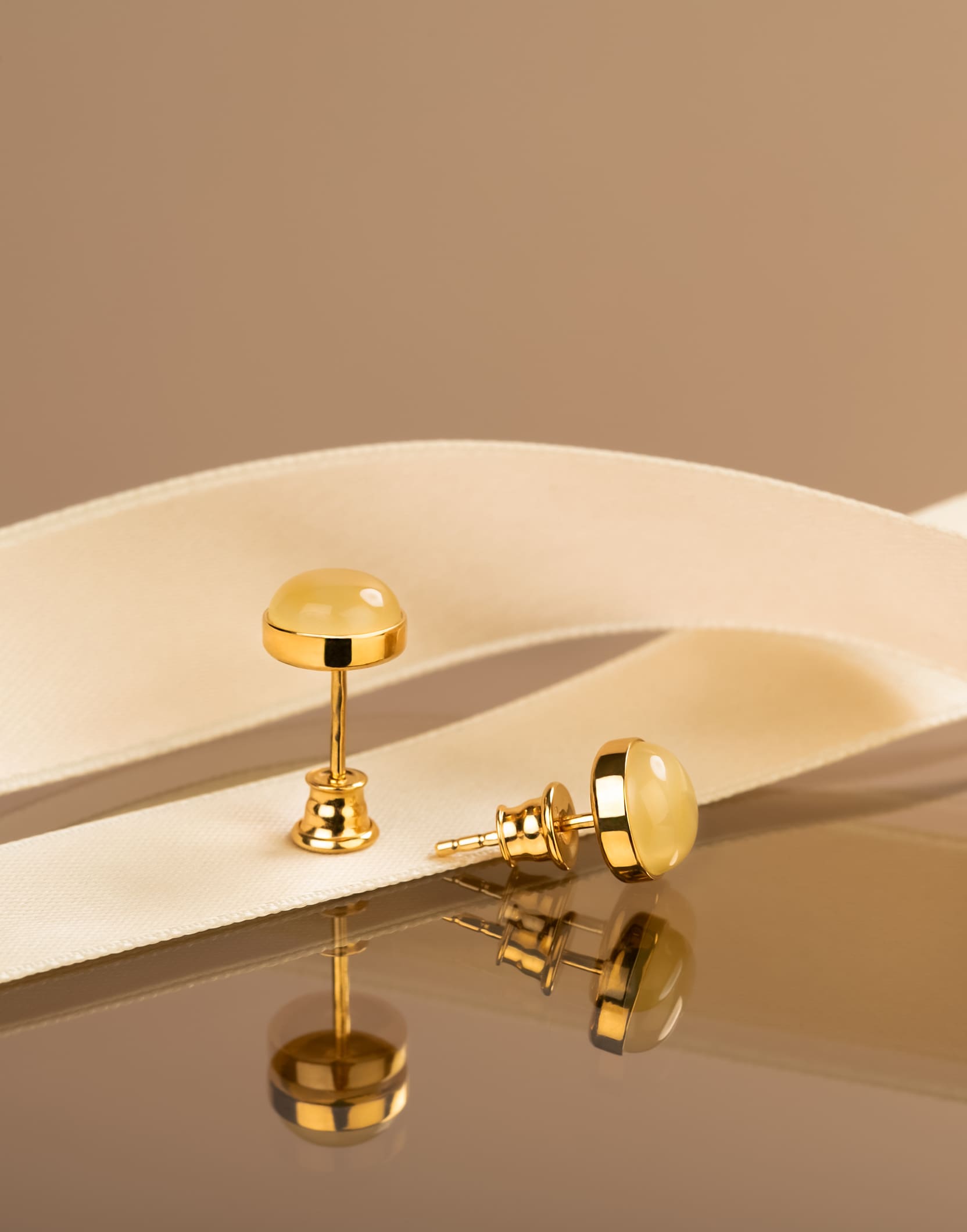 Minimalistiniai paauksuoti auskarai su 8 mm gelsvu gintaru – AUREA