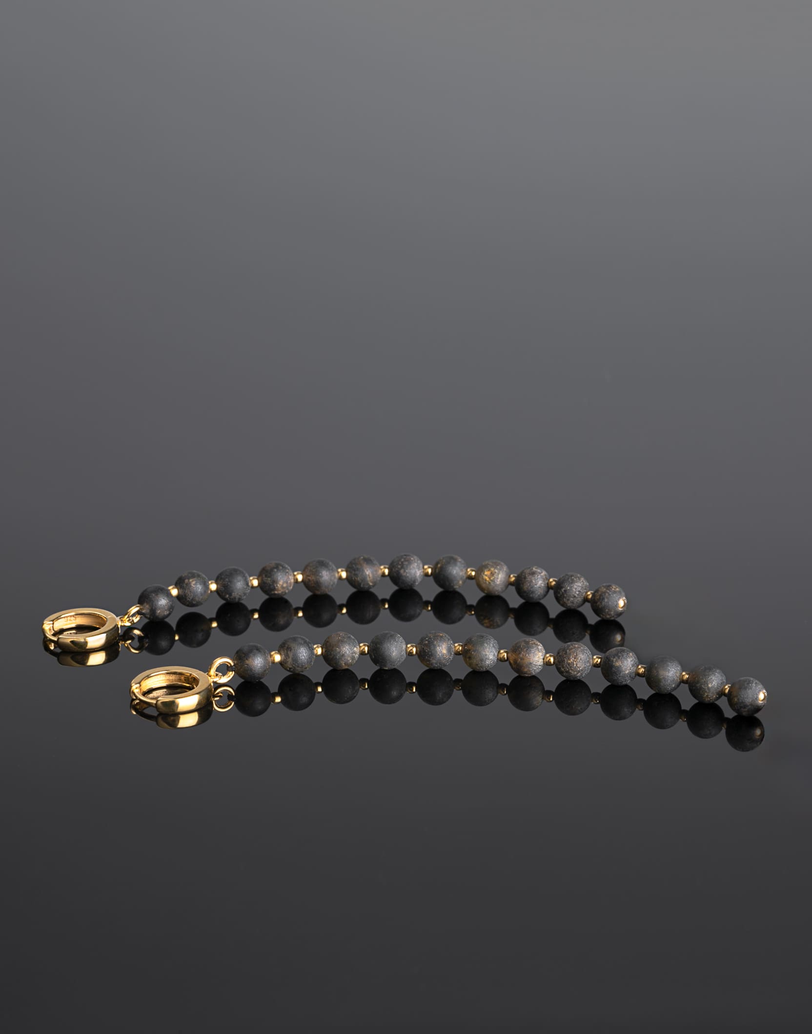 Ilgi paauksuoti auskarai su juodo gintaro karoliukais – GOLDEN NERO