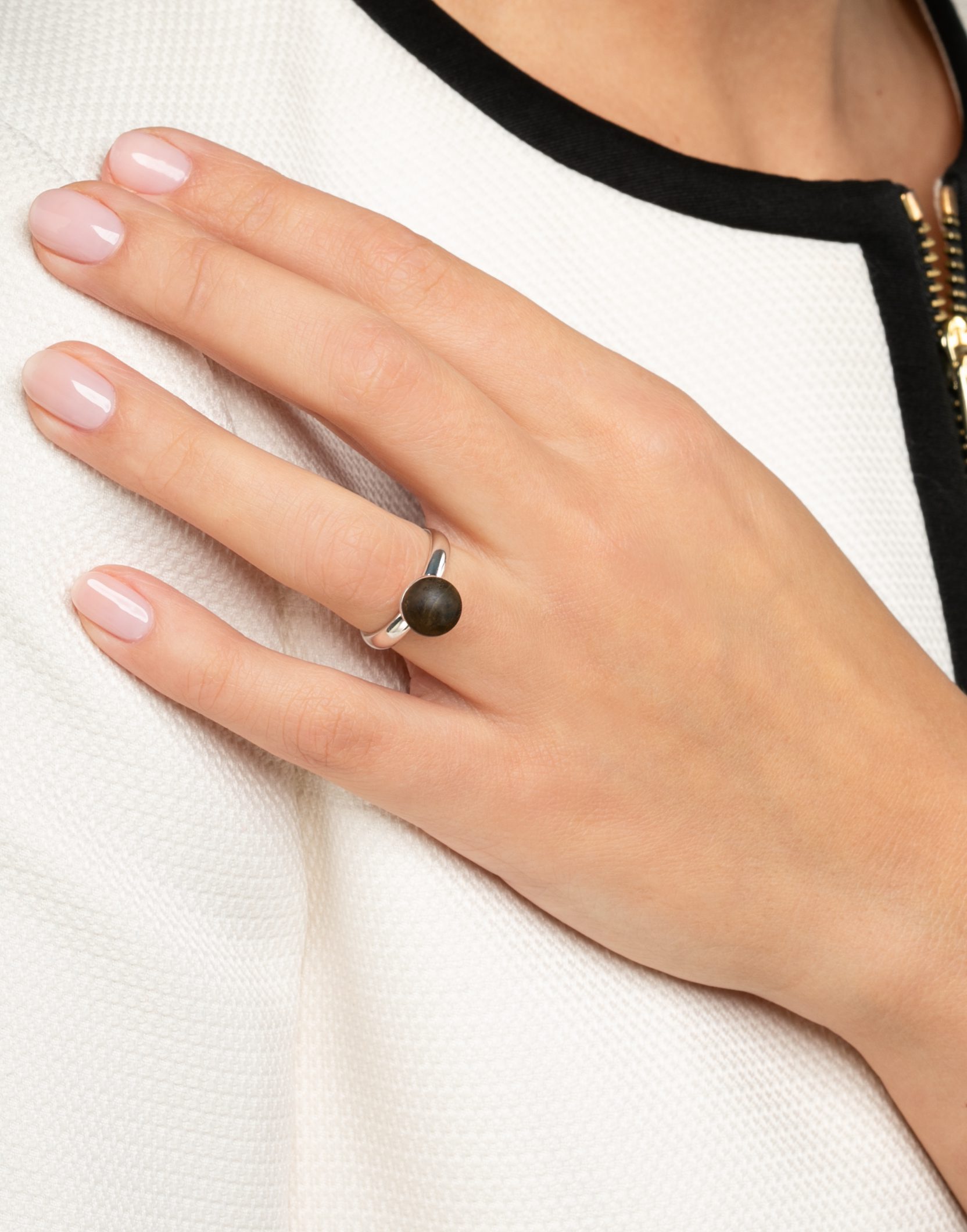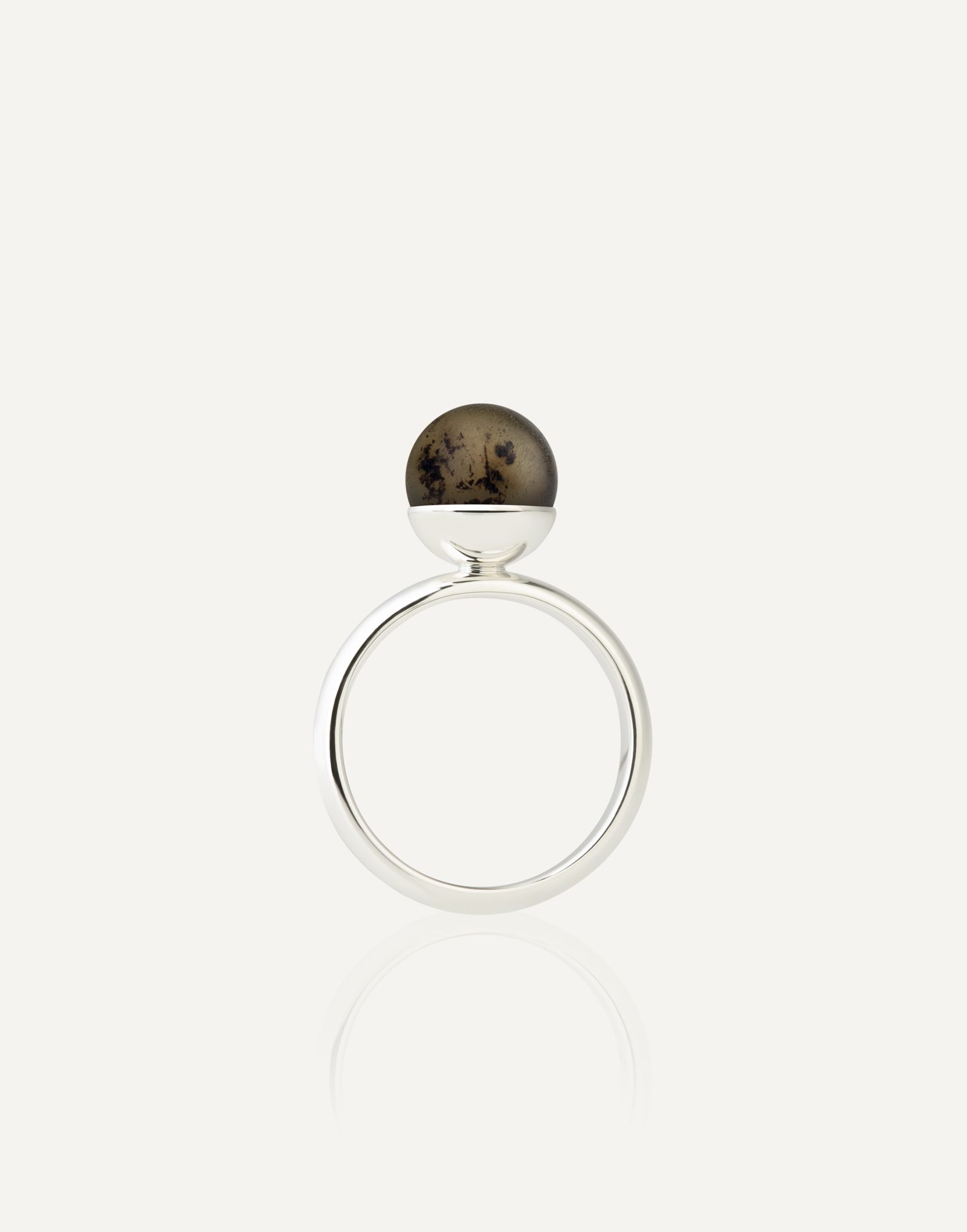 Modernaus dizaino sidabro žiedas NERO – išskirtinis akcentas, kuris išraiškingai papildys jūsų stilių. Žiedo gintaras nupoliruotas sausu būdu, pašiaušiant gintaro paviršių. Dėl šio poliravimo metodo gintaras tampa matinis, pilkšvo atspalvio, tačiau ilgainiui žemės spalvų gama išryškėja. Išskirtinis gintaro žiedo dizainas papildys tiek kasdienius, tiek šventinių drabužių derinius. Žiedas su burbuliuku tikrai neliks nepastebėtas!