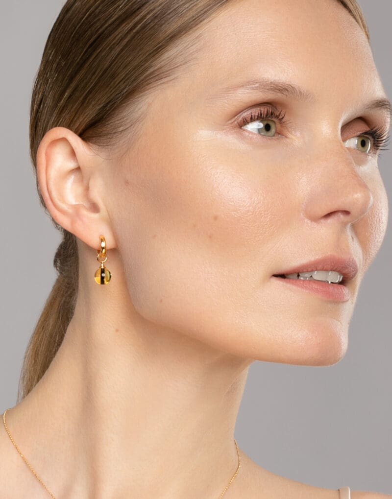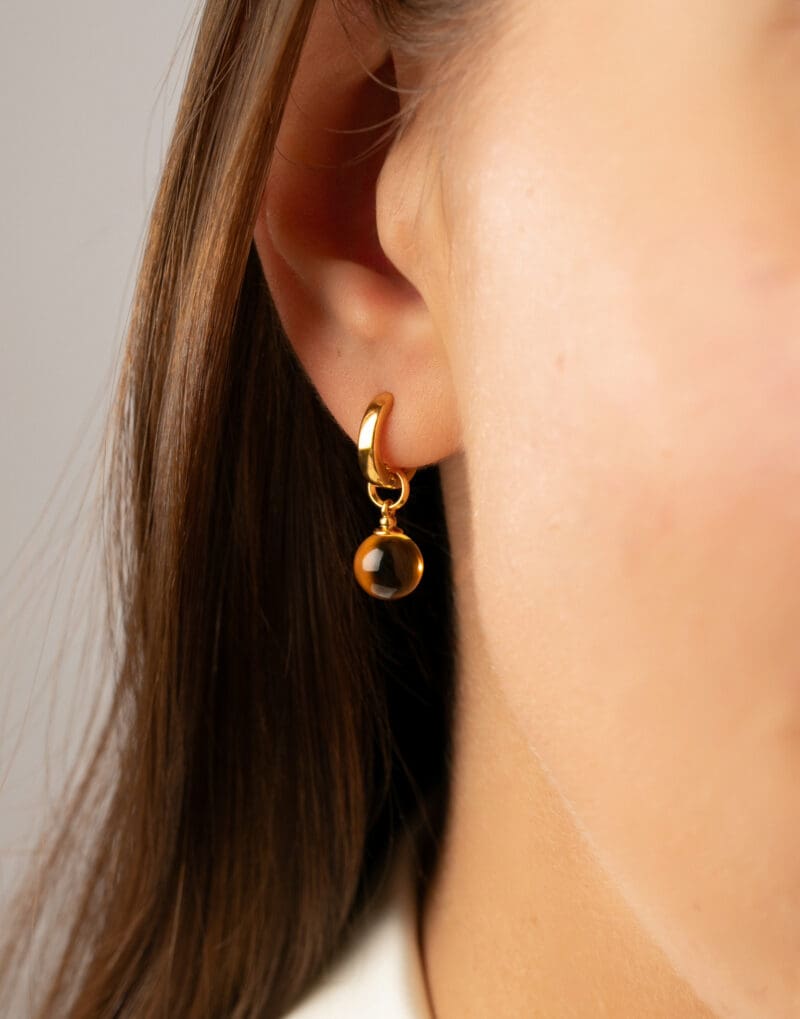 Paauksuoti auskarai HOOP su tamsiai raudono gintaro pakabukais – GOLDEN CHERRY puikiai tiks prie įvairių drabužių derinių. Vyšninio gintaro pakabukai nuo paauksuotų auskarų nusisega, todėl HOOP auskarus galėsite nešioti ir atskirai, o pasirinkto dydžio pakabukus segti prie grandinėlių, vėrinių ar apyrankių. Pasirinkite norimą gintarinių pakabukų ir apvalių paauksuotų auskarų dydį ir mėgaukitės moderniu papuošalu.