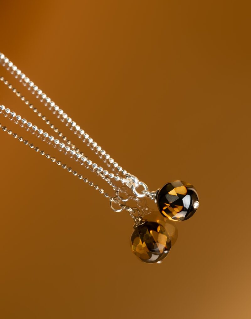 Sidabrinis minimalistinis kaklo papuošalas su 8 mm skaidraus gintaro pakabuku – TIGER